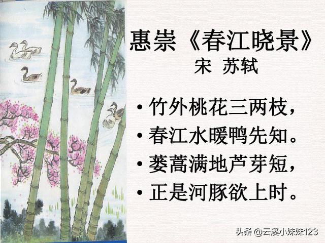 竹外桃花三两枝,春江水暖鸭先知。