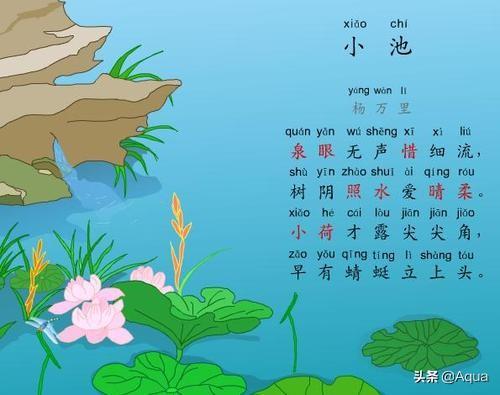 泉眼无声惜细流,树荫照水爱晴柔。小荷才露尖尖角,早有蜻蜓立上头。