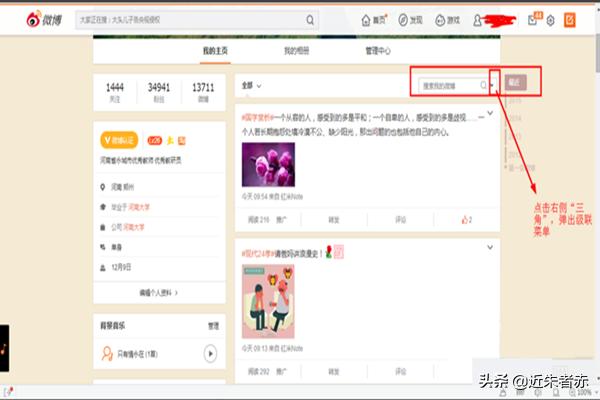 A 点击我的微博中”搜索框“右侧的"下拉三角框”