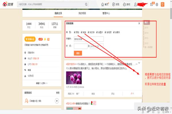 B 根据需要勾选相应的选项,就可以统计出相应的原创和转发的数目了